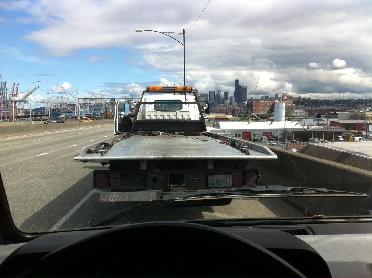 “The tow truck should be there in 30 minutes.” I hung up the phone, took a long look at the city waking up on the horizon, pulled out my book and started to read. Road Side Assistance pulled up and put out some orange cones to warn the increasing traffic to stay to the left. Then the driver sauntered up to see if I was okay.