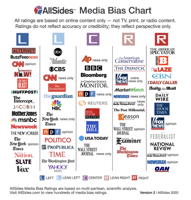 The election is coming up quick, so I am writing this blog to encourage people to vote. If you read my blog you know that I am concerned about women’s rights and equal rights, I am pro-choice, I believe in science and I am deeply concerned about the environment, so my vote goes to Joe Biden. Most of you have already decided who you will vote for in this election, but if you are on the fence, I’ve included a chart of news sources and links to check out, because getting your voice heard is important, and being informed from a broad base of news sources is equally important. It doesn’t matter whether you are democrat or republican, what matters is that we bring the nation together. Young, old, white, black, women, men, Buddhist, Catholic, gay, straight, and everything in between. We are all people.